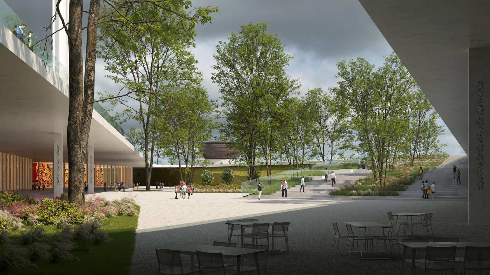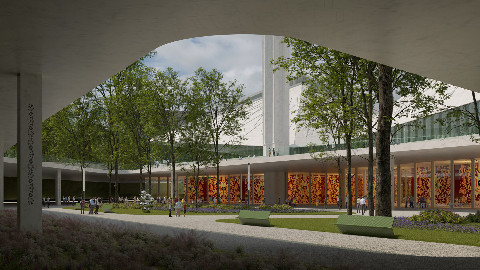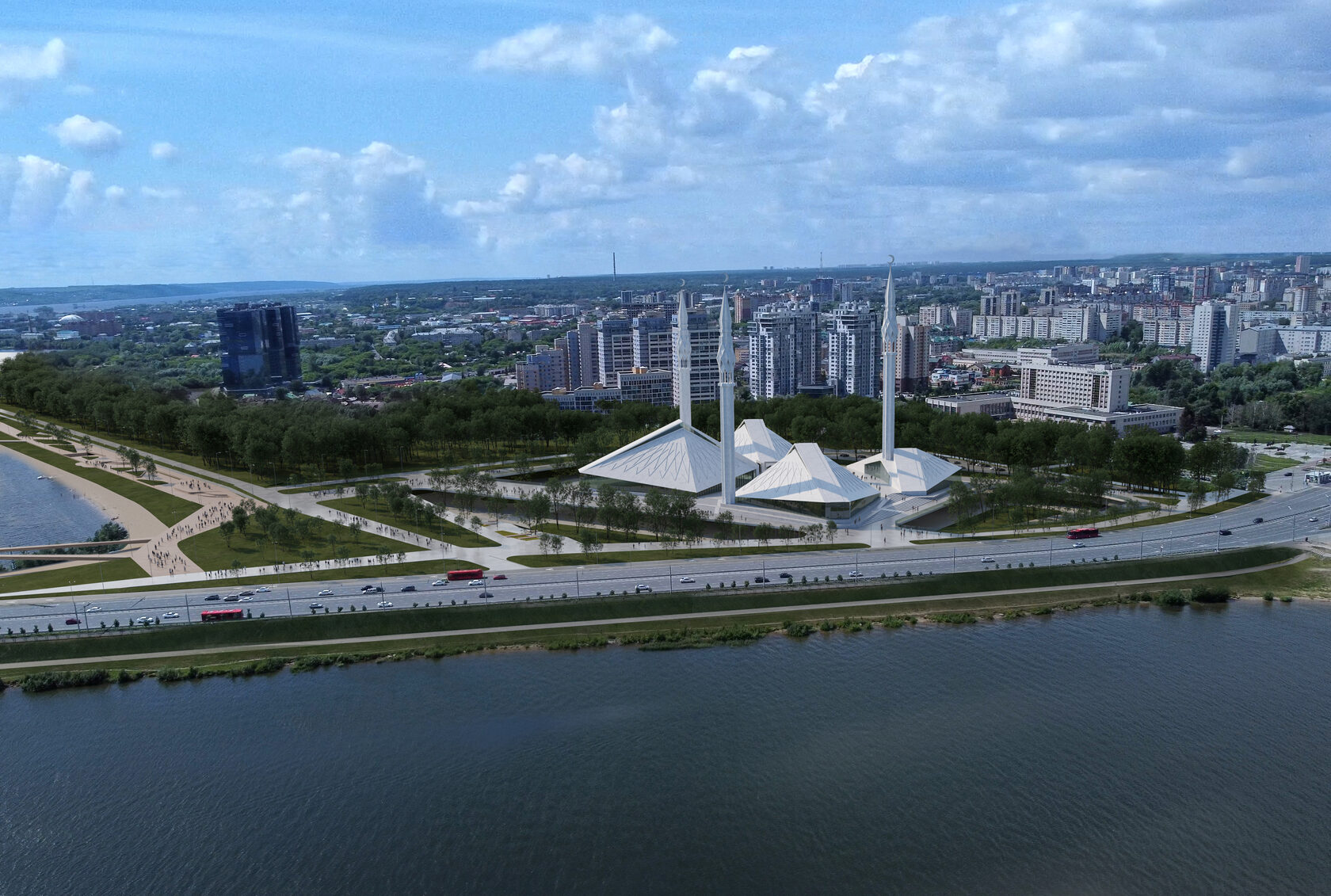 Все это, благодаря белому цвету фасадов, олицетворяющий чистоту. Круговое остекление архитектуры облегчает монолитный объем, показывая прозрачность и открытость религии Ислам. Геометрические и современные паттерны подчеркивают и улучшают детализацию объема, при этом не нагружая ее.